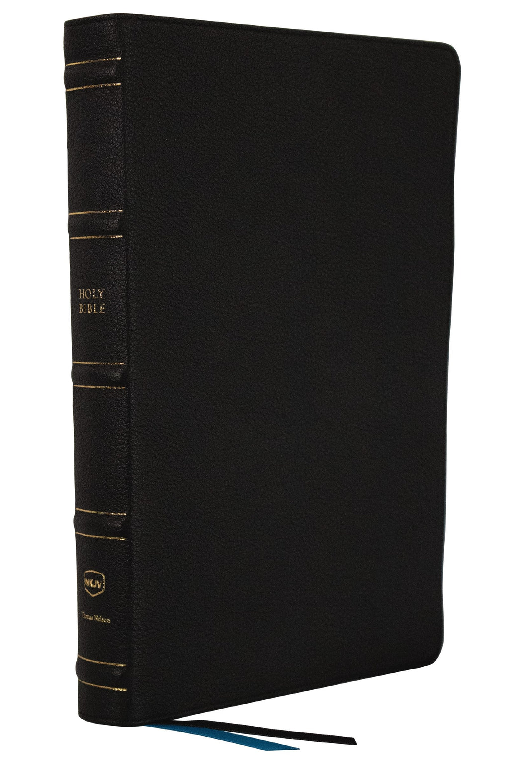 NKJV Large Print Thinline Reference Bible Blue Letter (Comfort Print)-Black Genuine Leather