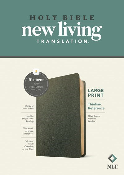 NLT Large Print Thinline Reference Bible Filament Enabled Edition-Olive Green Genuine Leather