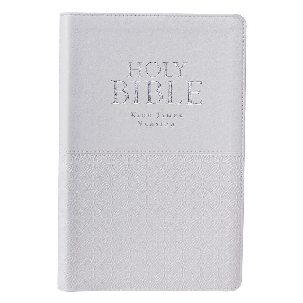 The pure white Faux Leather King James Version Deluxe Gift Bible with Thumb-index is the perfect Bible for a White Bible Ceremony. This traditional Southern ceremony takes place a week or so before the wedding. During the intimate ceremony, the bride is given a white Bible and several flowers that each represent a quality found in Christian marriage. The white faux leather King James Version Bible, with its traditional text, its the perfect fit or for an age-old ceremony.
