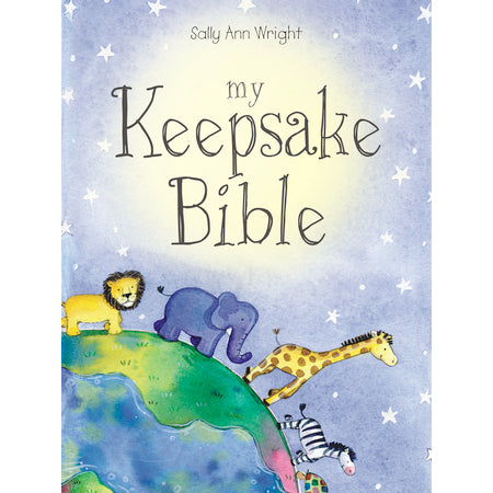 "My Keepsake Bible combines baby records, family history, and Bible stories all in one! The padded hardcover book is the perfect gift for a new baby and the ideal way to begin to teach little ones about God's story. Children will learn early that their family's story is a part of God's story. Full color, adorable art complements the stories, prayers and places to record baby and family information. It's a memory book and a Bible story book all in one!