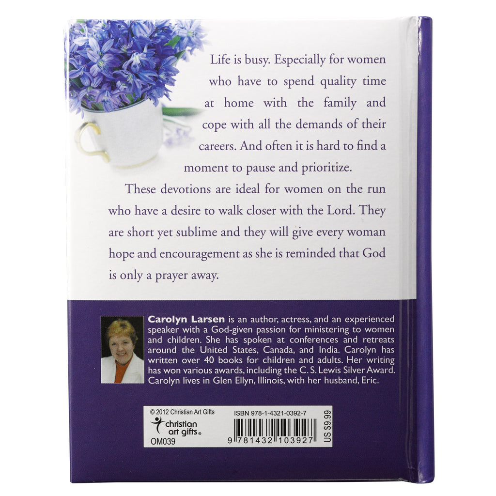 Life is busy. Especially busy for women who juggle home, family and career. One-Minute Devotions for Women is perfect for the woman who is busy with life, but has the desire to walk with the Lord, and grow spiritually every day. The messages are short yet sublime, and give hope and encouragement as she is reminded that God is always near - only a heartbeat away. The 366 topical messages are written in language every woman can identify with. This compact volume is a pleasure to handle and open every day, and features: a padded hardcover binding with silver foiled title; an attached ribbon page marker and a presentation page for gift-giving.
