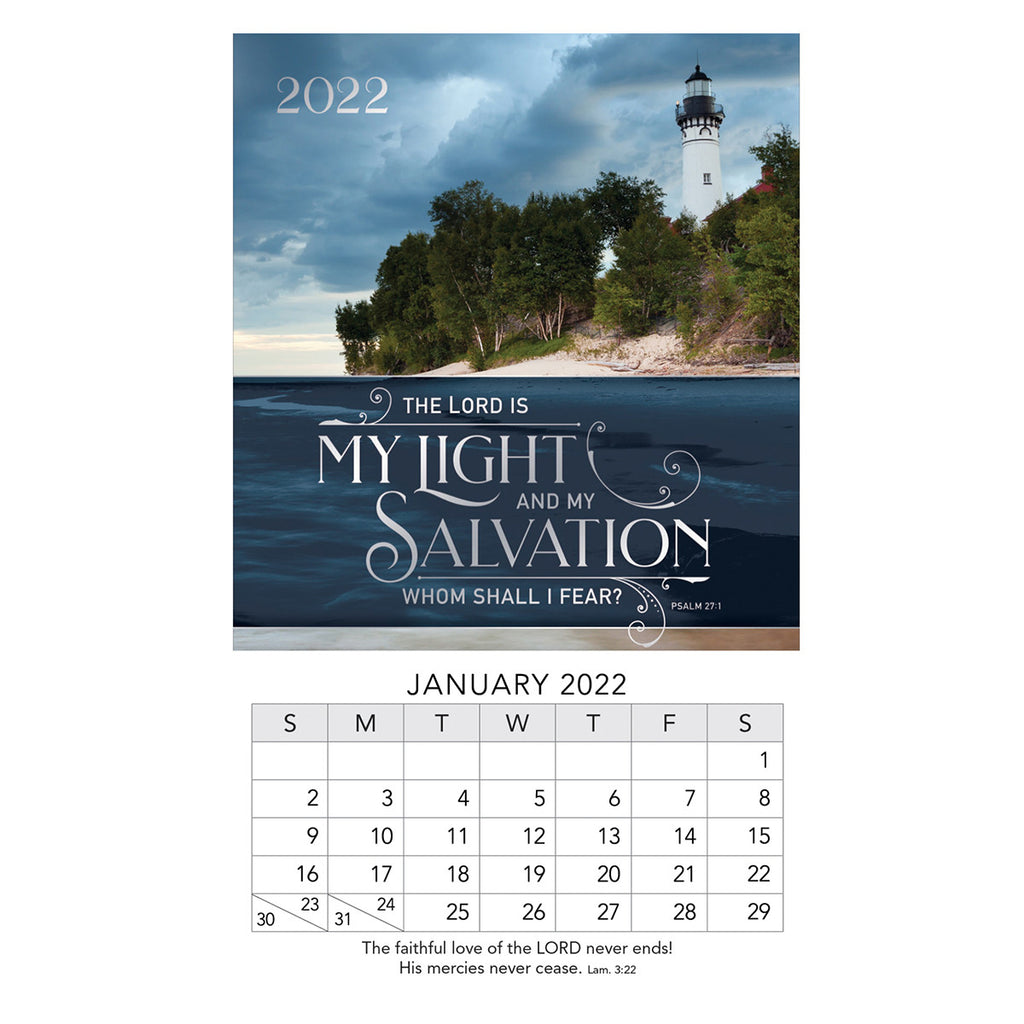 This tranquil lighthouse design features a verse that is a fitting encouragement for anyone. Look to the LORD as your beacon of light this year with the 2022 Light and Salvation Mini Magnetic Calendar.