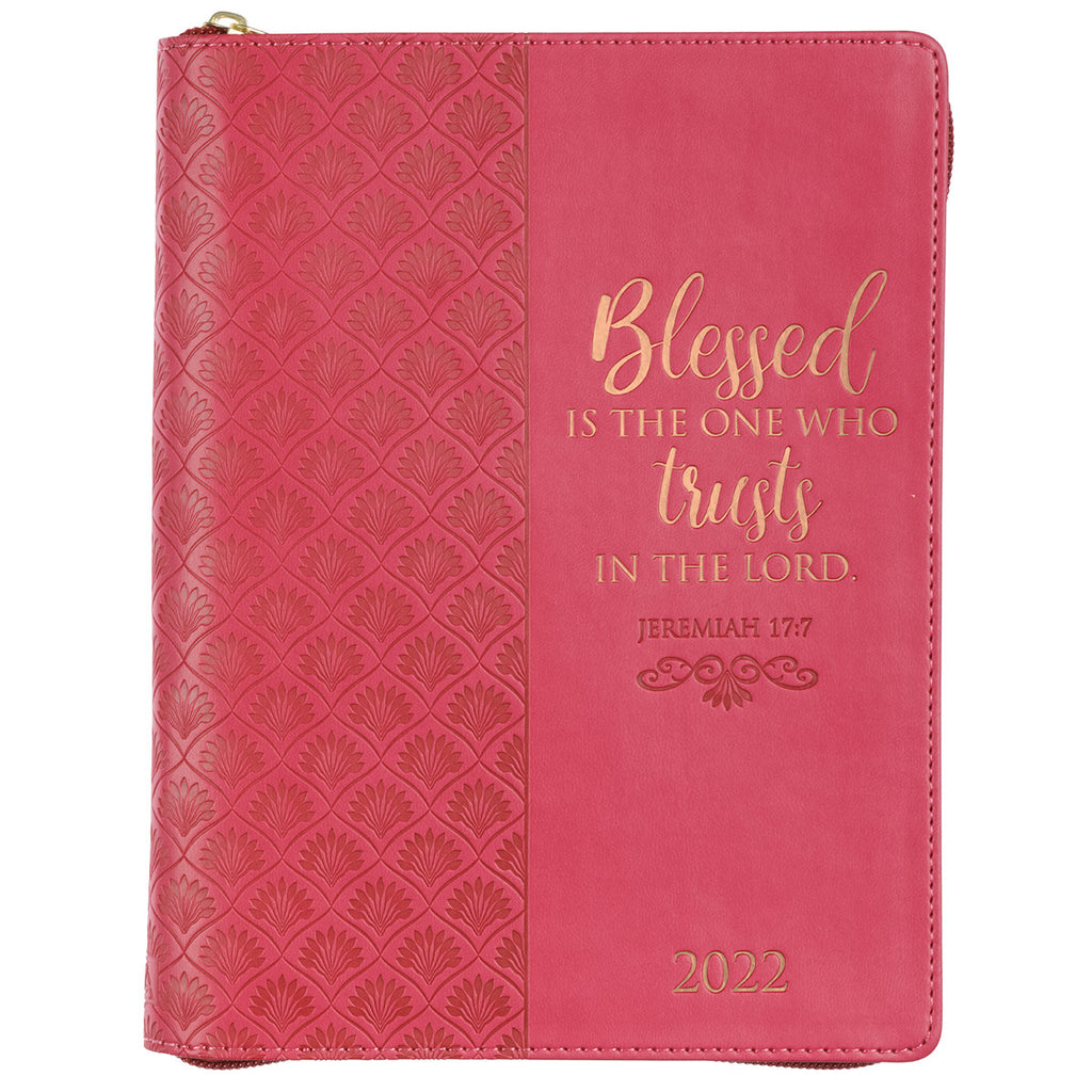 The 2022 Blessed Is The One Who Trusts Large Zippered Pink Faux Leather 18-month Planner for Women is a must-have planner for the friend who likes to plan out her life in detail or the mom who needs an uninterrupted way to plan her family's activities. Planners make wonderfully useful Christmas gifts, so share the 2022 Blessed Is The One Who Trusts Large Zippered Pink Faux Leather 18-month Planner with the women in your family this Christmas.