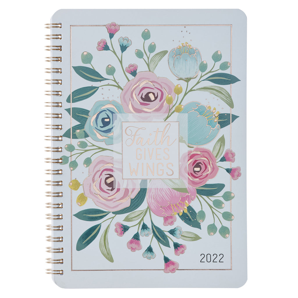 Face the triumphs and challenges each new year brings with the 2022 Faith Gives Wings Wirebound Daily Planner.