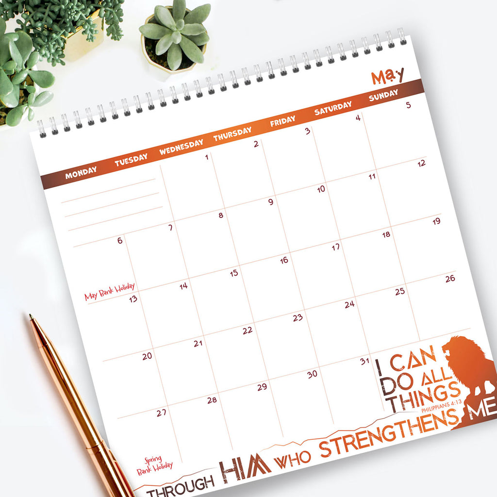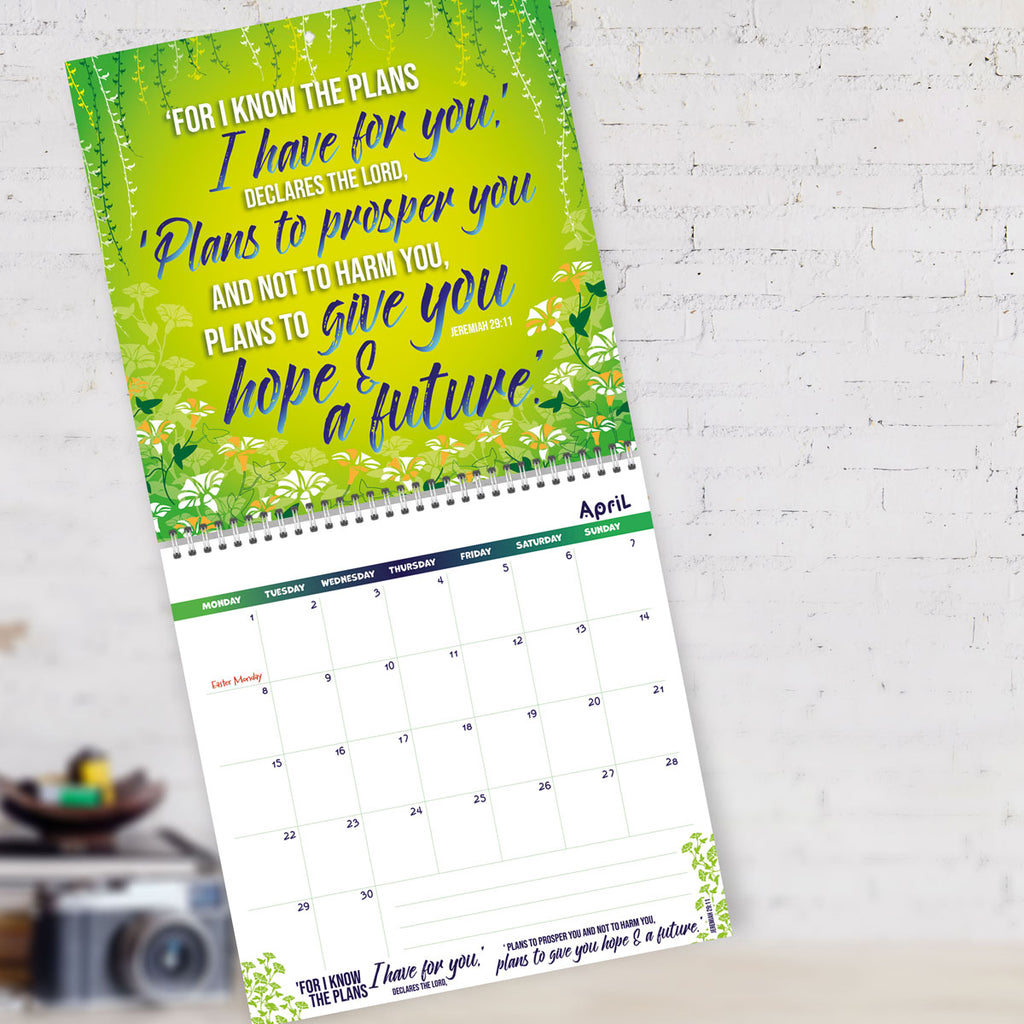 Scripture verses printed on the bottom of each calendar page, making these calendars perfect Christian gifts for women.
