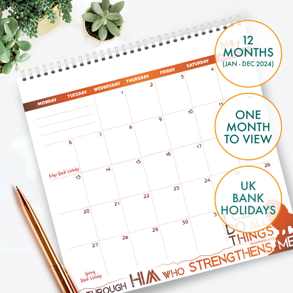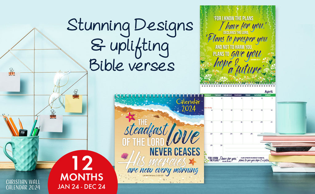 2024 Christian calendar to hang on a wall, medium sized. A prefect Christian planner, which makes a great Christian gift.