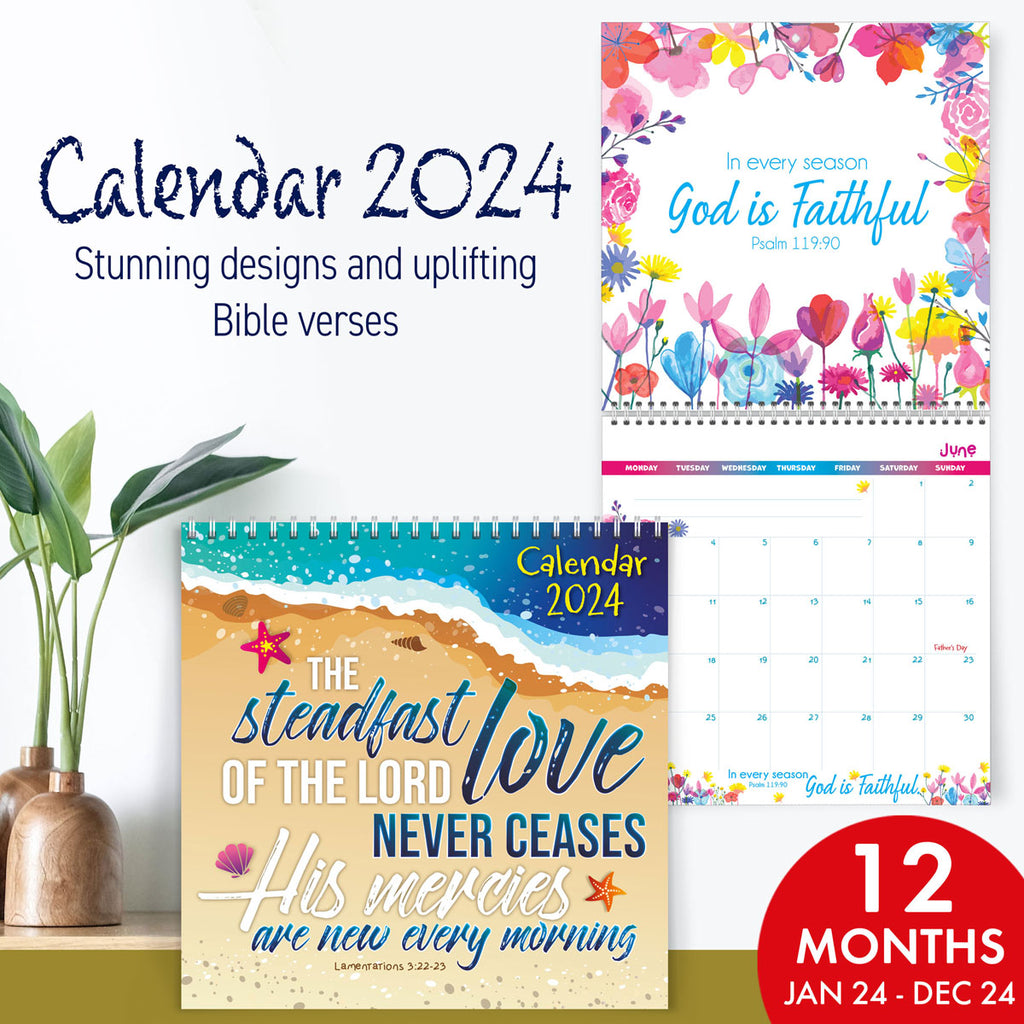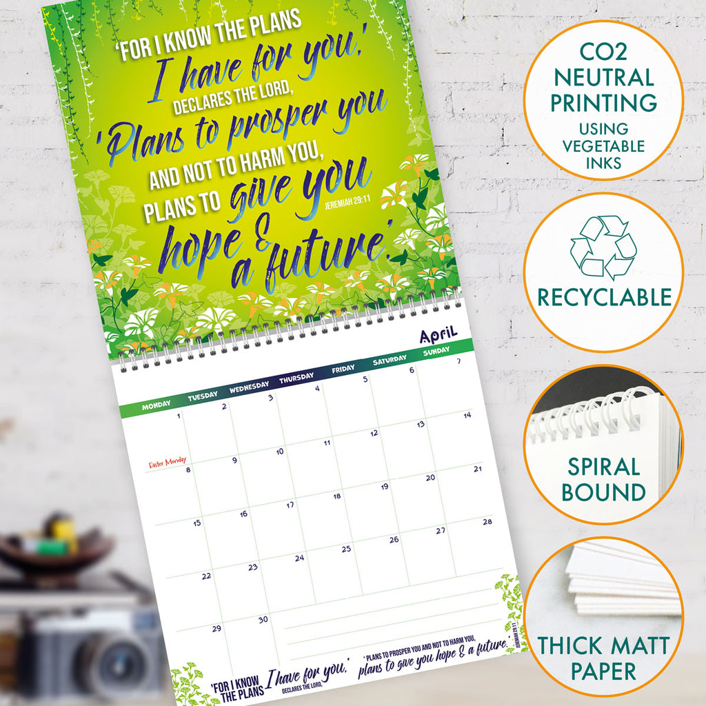 Beautiful contemporary Christian calendar 2024, designed and sold in the UK, printed in the Netherlands on sustainably-sourced paper and CO2 neutral