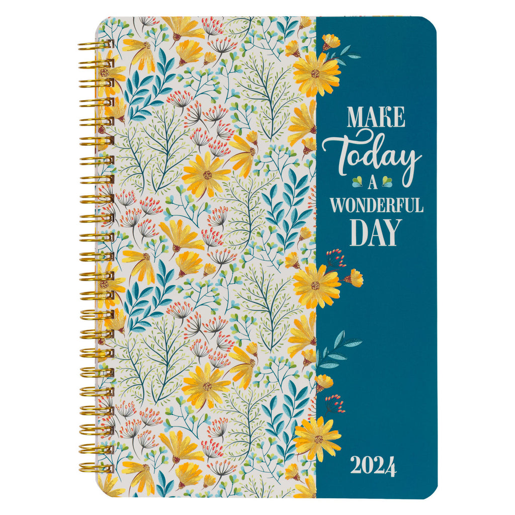 Use the positive sentiment of2024 Make Today a Wonderful Day Weekly Planner to plan a happy life. Happiness is a choice, and you will be prompted to think a happy thought every time you see the positive statement on the planner's cheerful cover.