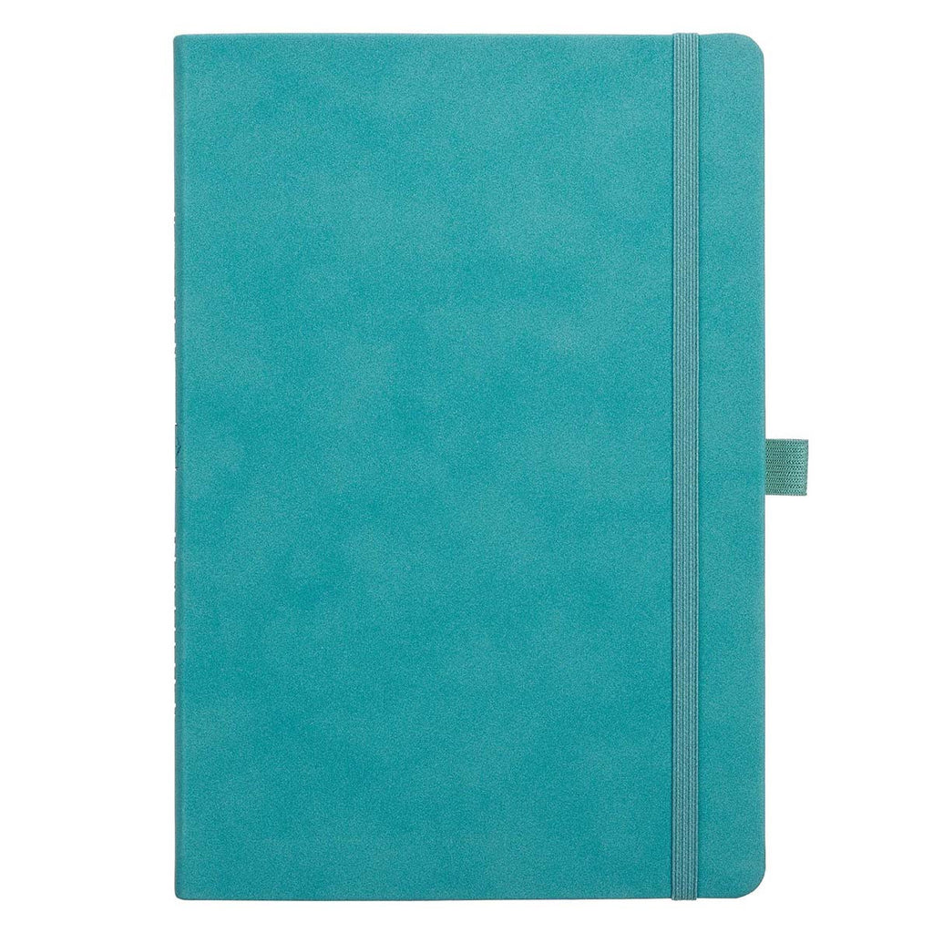 A teal satin ribbon marker and elastic band closure are included for your convenience. High-quality no-bleed paper can handle various mediums, so you can plan using ink, pencil, or even paint. A pen loop is attached to the cover so you can always have a pen or pencil handy.