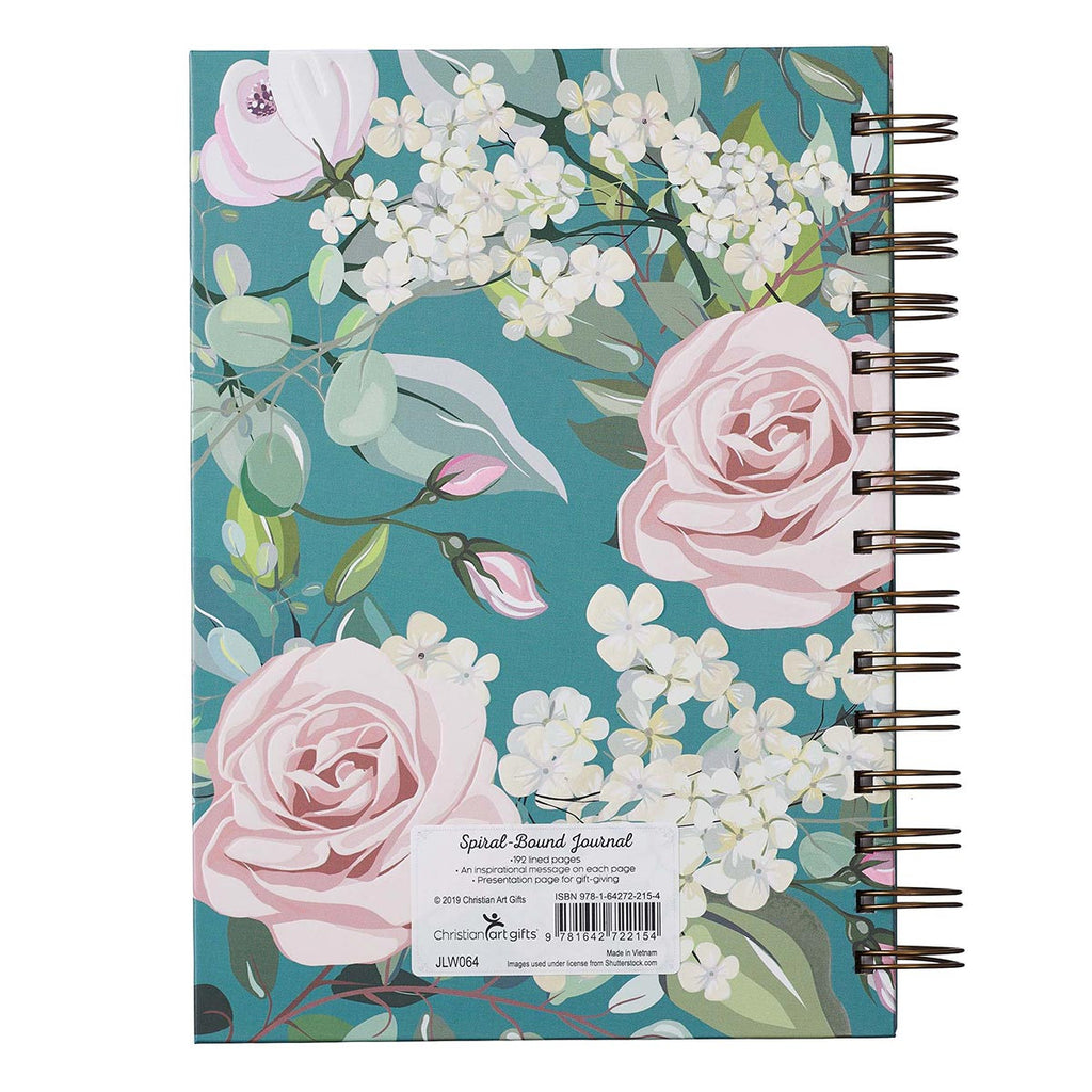 The gorgeous combination of white flowers against a teal background on the hardcover of the That My Joy May Be In You Large Wirebound Journal, frame the sentiment on this wirebound journal beautifully. It is a reminder that our joy comes from a relationship with God through His son Jesus Christ. The message is taken from John 15:11, "These things I have spoken to you, that My joy may remain in you and that your joy may be full."
