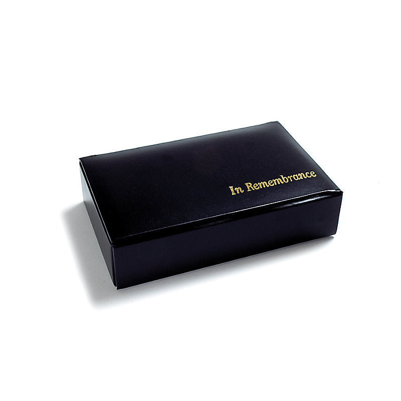 "In Remembrance" is embossed in gold on the cover of the case, which measures 7 1/2" x 4 3/4", from Broadman and Holman, a trusted name in pastor supplies.
