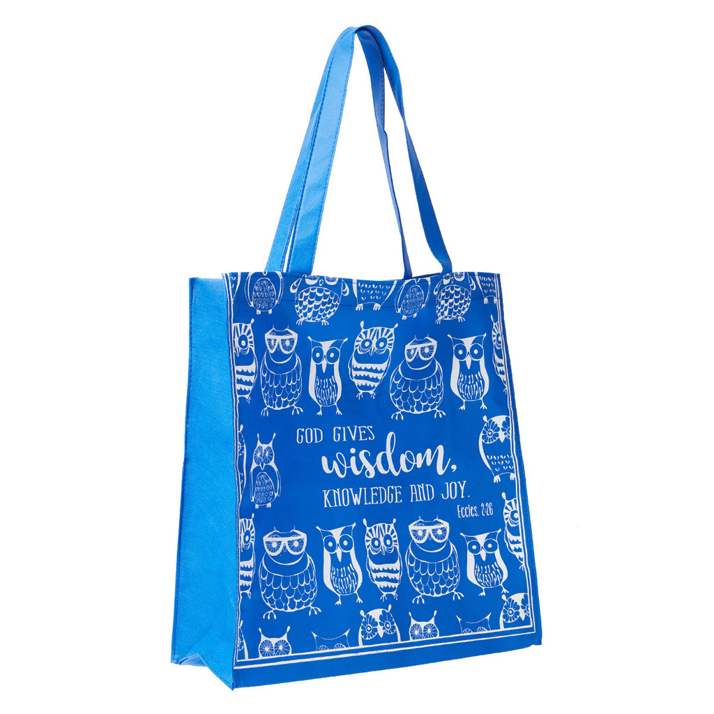 Owls symbolize wisdom and knowledge. The clever God Gives Wisdom Tote Bag features a variety of owls in different shapes and sizes. A key portion of Ecclesiastes 2:26 appears in the center of the tote bag: “God gives wisdom, knowledge and joy.” This verse reminds us that everything we need for successful growth comes from above.