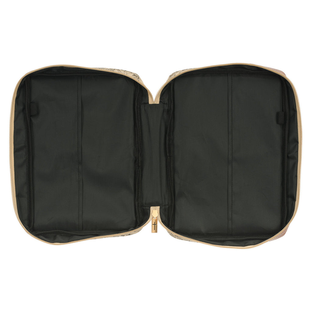 This Bible case features a beautiful pencil-sketched floral design screen-printed on both the front and back of the natural canvas, giving it an elegant and stylish feel. The honey-brown faux leather patch on the front of the case is inscribed with the gold-foiled sentiment.