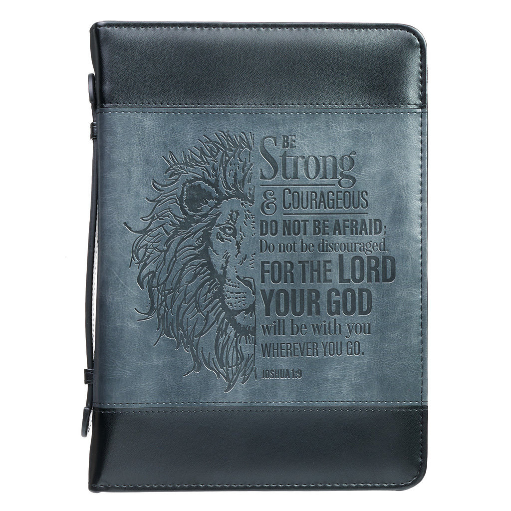 Arm yourself with the Word of God wherever you go, and protect your Bible from harm with the Be Strong Lion Two-Tone Classic Bible Cover. You will be inspired to stay strong and courageous on your journey of faith every time you place your Bible inside this sturdy gray and black Bible cover.