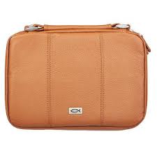 Keep your Bible clean and dry when you travel with it or carry it to Bible study in this classic tan full grain leather cover—and always have a notebook and pen (included) handy for jotting down insights and points you want to remember. This carry case makes a great gift for anyone on your list, and for any occasion! Packed with great features, this Bible cover opens to reveal a credit card organizer, a zipped mesh pocket, four pen loops, a notebook slot, and a notebook and pen to get you started. The full-grain leather exterior features neat stitching and metal Ichthus fish accent badge. A zipper closure and leather carrying handle seal the deal.