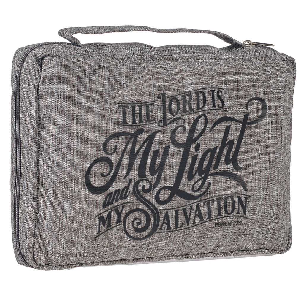 Fight fear with the words on the cover of the My Light and Salvation Gray Value Bible Cover—the perfect hardworking and durable cover for children or students.