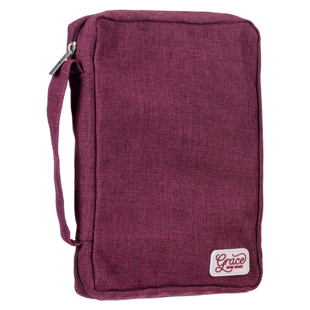 The long-lastingPlum Poly-canvas Value Bible Cover with Grace Badge is just what you need to protect your Bible on your way to church, small group, or Bible study.