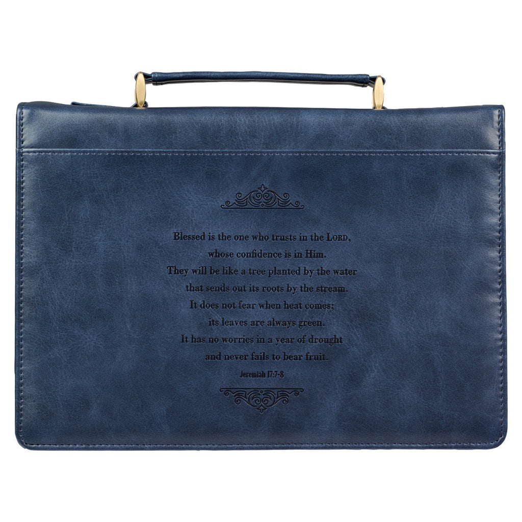 Store your Bible inside the protective covers of the Blessed Nautical Navy Faux Leather Classic Bible Cover, and let the message it bears fill your heart with peace.