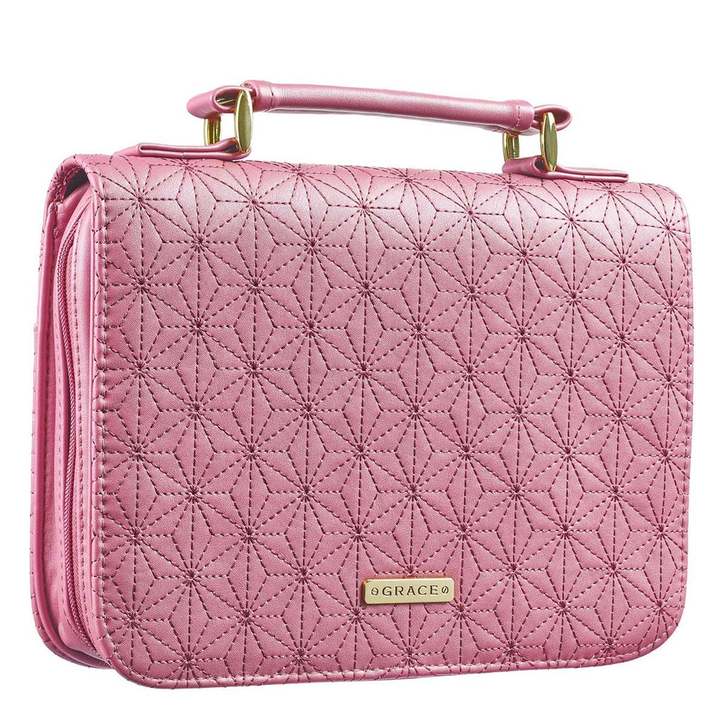 The Dusty Rose Pink Grace Faux Leather Fashion Bible Cover is the perfect Bible cover for the more romantically inclined friend or family member. It is sturdy enough to carry to and from Bible study and will make a great gift for your caring and compassionate Bible study leader. Protect your precious Bible with the Grace Dusty Rose Pink Faux Leather Fashion Bible Cover.