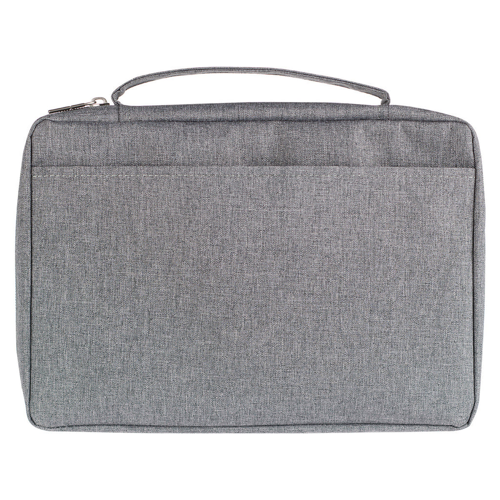 The durable, water-resistant poly-canvas used in constructing the gray Bible case can endure a lot of handling. The front cover is screen printed in black with Scripture taken from the Psalms.