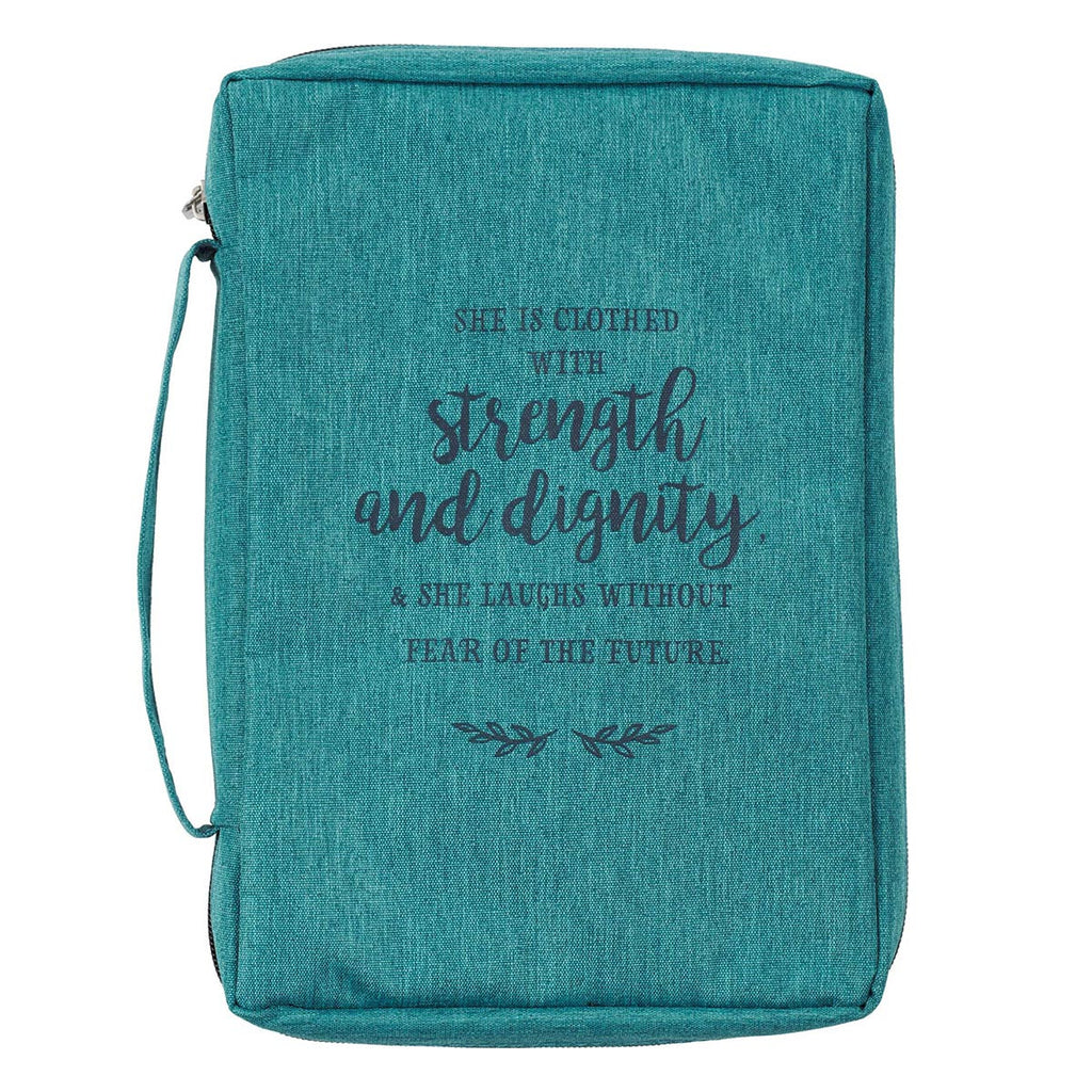 The Strength And Dignity Teal Value Bible Cover celebrates the female mentors in your life with words of praise straight from Scripture. The Bible case pairs modern design with durable and affordable construction in a very popular color.