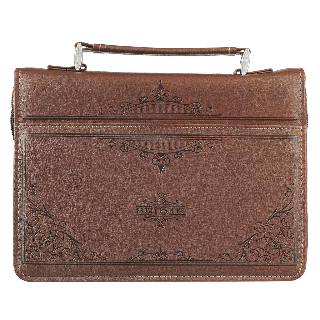 Protect your Bible from the elements with the A Man's Heart Brown Faux Leather Classic Bible Cover.