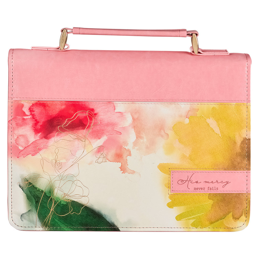 Let the message of the Pastel Meadow Pink Watercolor Faux Leather Bible Cover drench you with comfort and encourage you as you remember God's faithful and never-ending love and mercy towards his children are new every day. Then take this reassurance with you throughout your day.