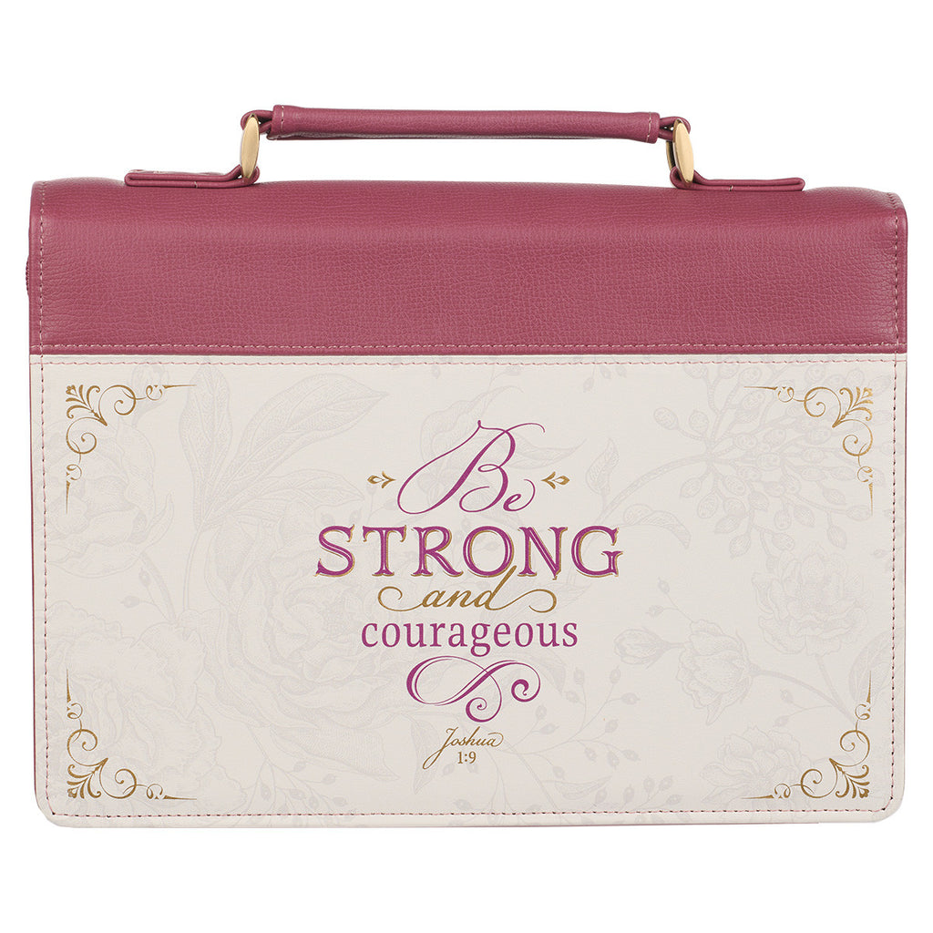 Let the quality construction of the Strong and Courageous Topas Pink Faux Leather Fashion Bible Cover protect your Bible as its message inspire you to act—with God by your side you can climb any mountain or face any battle.