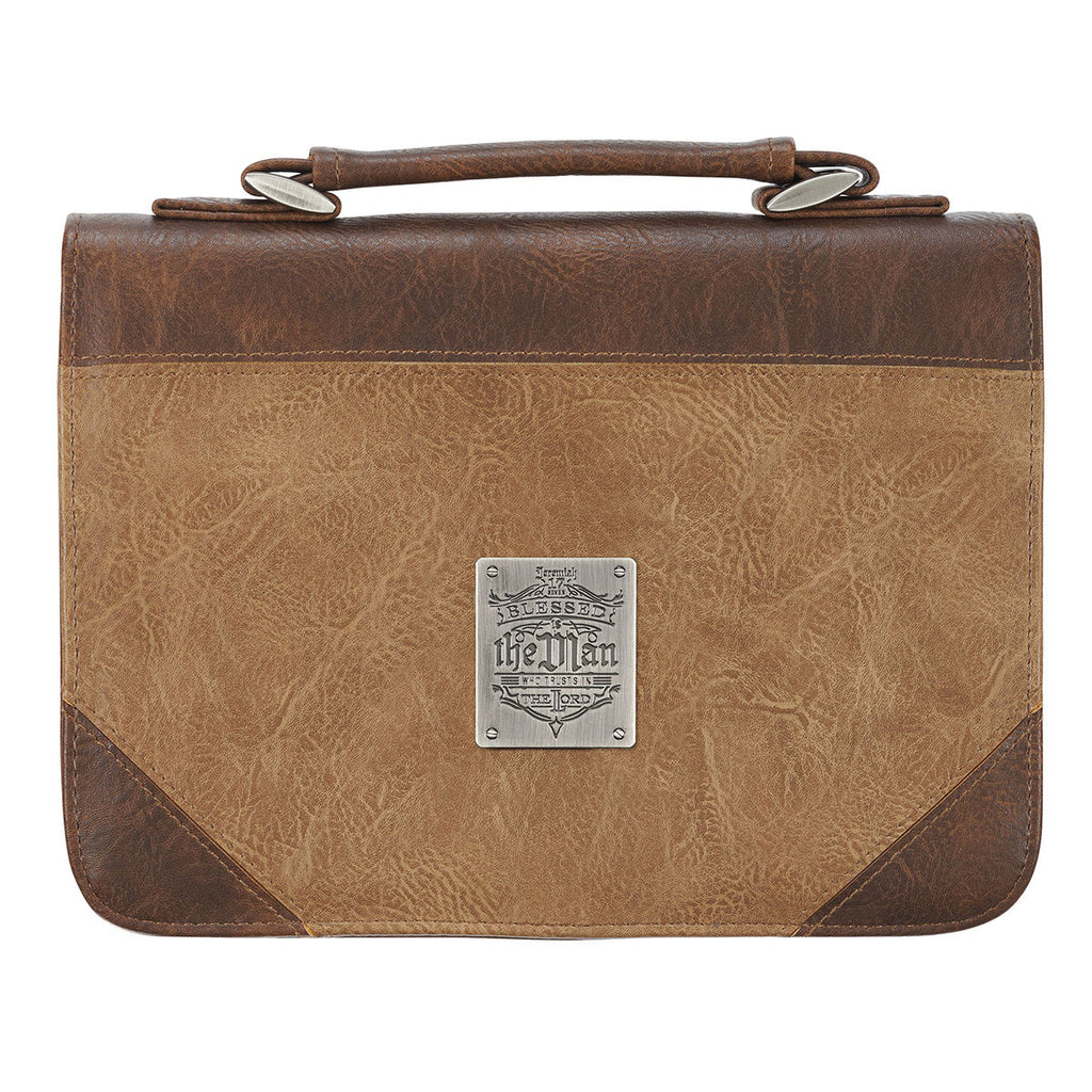 TheBlessed Is The Man Two-tone Brown Faux Leather Bible Cover is a reminder that the man who puts his trust in the LORD is favored and blessed and will encourage him to remember his status before the LORD.