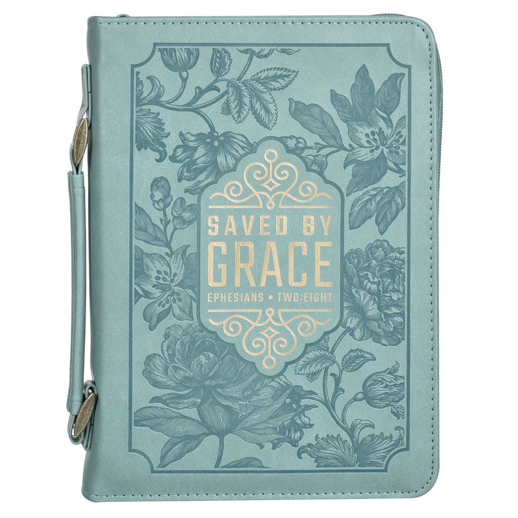 Saved by Grace Eph. 2:8 Bible Cover Fashion Teal. Large