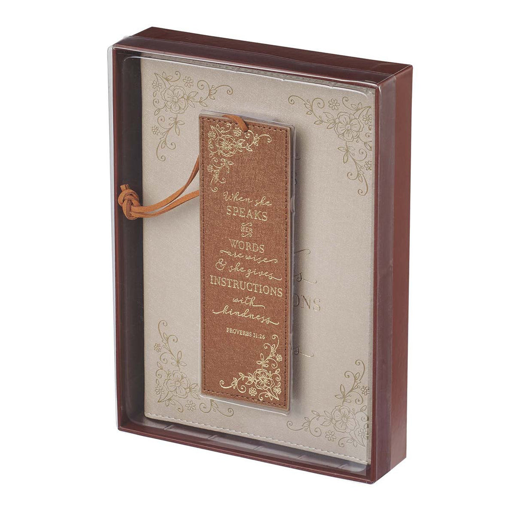 Bless a friend and mentor today when you present the When She Speaks Faux Leather Journal and Bookmark Gift Set for Women to thank her for her friendship and guidance. She will love recording her thoughts and dreams in the luxurious faux leather journal, and mark her favorite passage in her Bible with the faux leather bookmark.