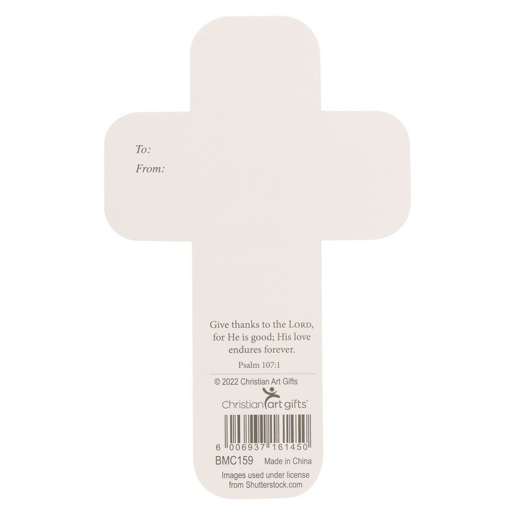 Pastel-colored flowers accented with gold-foiled outlines are set in the corners of these pretty cross-shaped paper bookmarks. The sentiment is presented in purple letters accented with gold-foiled lettering.