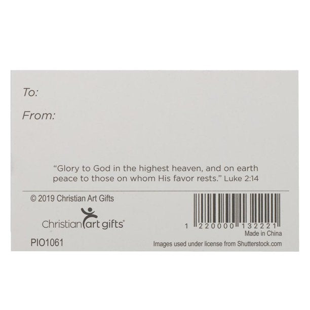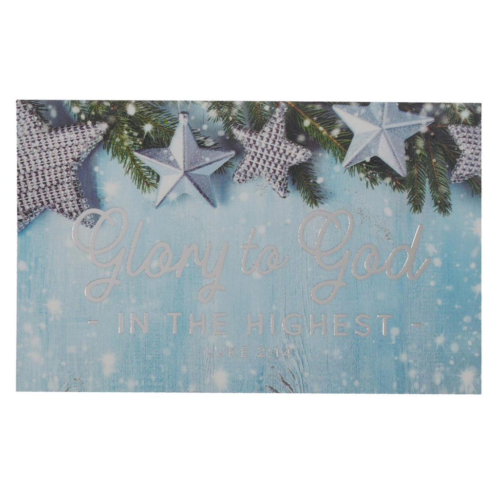 When you want to spread a little Christmas joy, these little Pass Around Cards are perfect for the job. Silvery ornaments and a fresh bough on a pale blue background beautifully frame the proclamation: “Glory to God in the Highest.” The back of the card, which has space for personalization, features the complete verse: “Glory to God in the highest heaven, and on earth peace to those on whom His favor rests” (Luke 2:14).