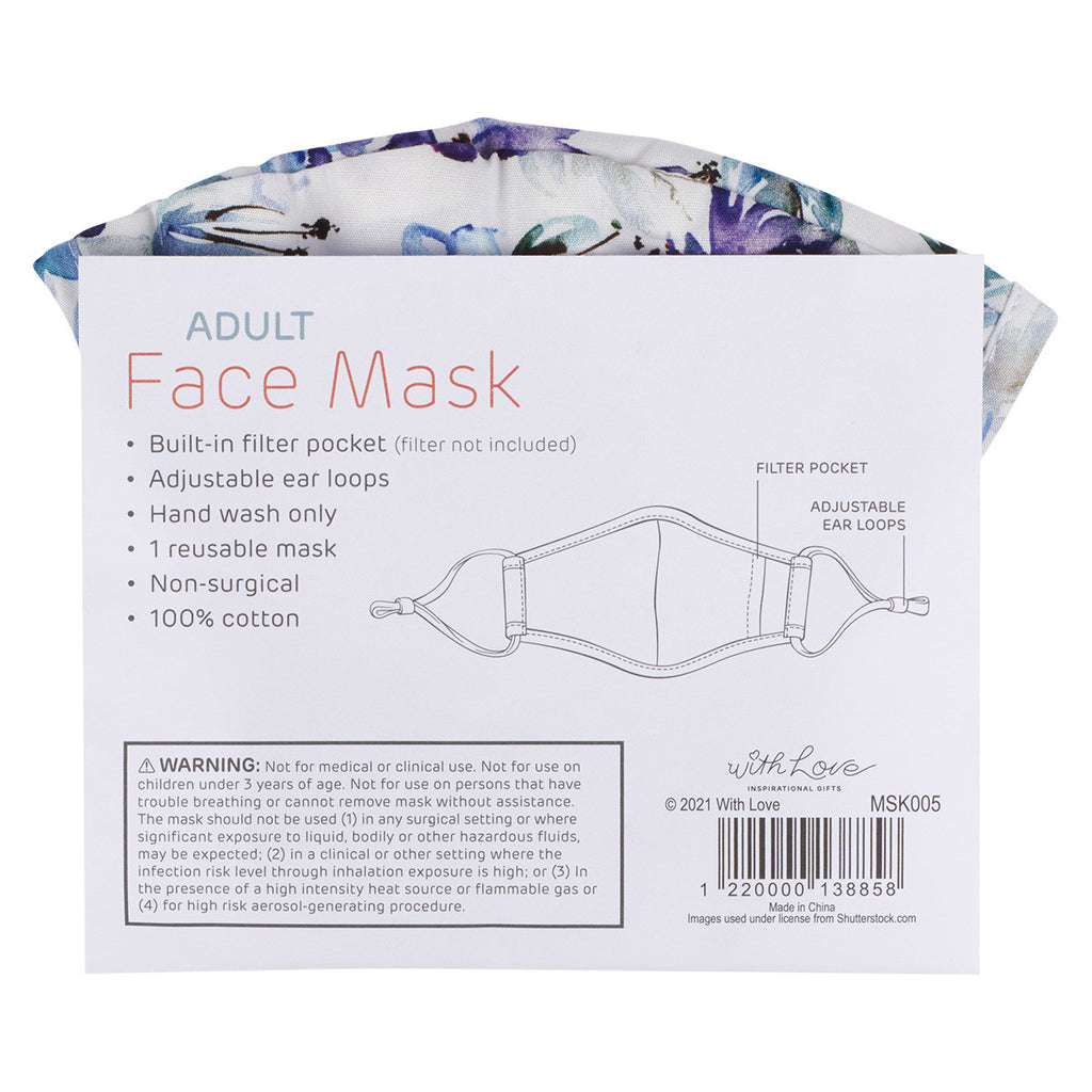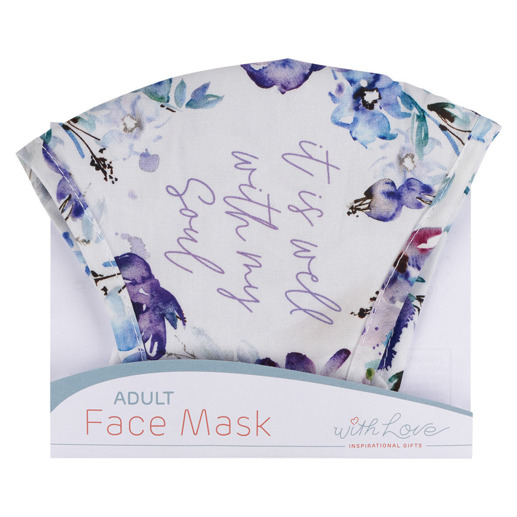 Share a touching, peaceful sentiment amid a fearful time when you wear the It Is Well Purple Posie Reusable Cotton Face Mask. Whether you keep it for yourself or give it to someone special, this mask will provide reassurance in a tumultuous season of life.
