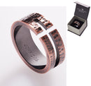 This exquisitely crafted men's ring references the profound message of God's love for the world found in John 3:16. This copper-plated ring features a dimple pattern and a cutout cross. Inside the band is stamped the Scripture reference, John 3:16. The overall design gives it a rugged yet sophisticated look.