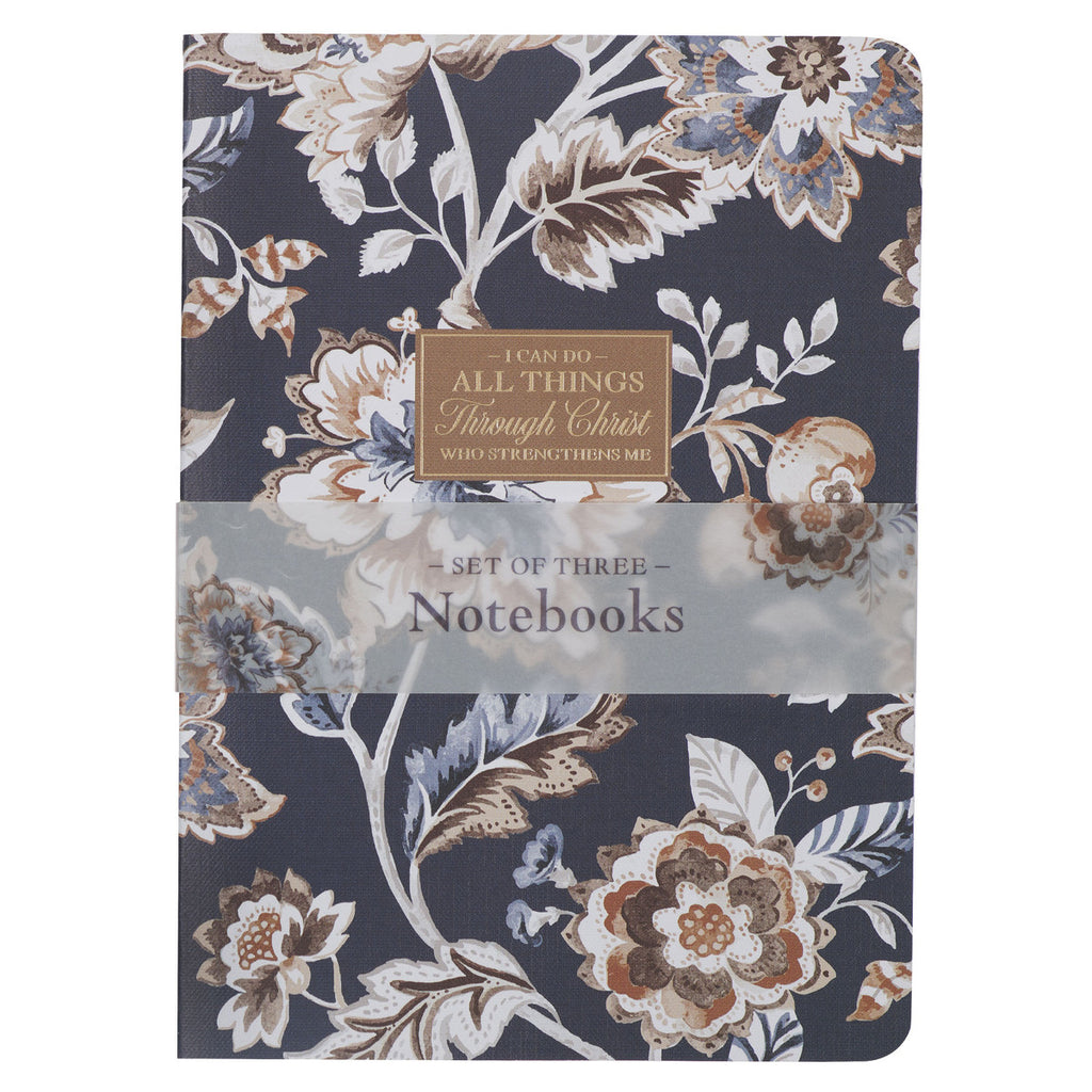 The I Can Do All Things Honey-brown and Navy Large Notebook Set provides you with three distinct notebooks, perfect for capturing your thoughts, making lists, and jotting down sermon notes.