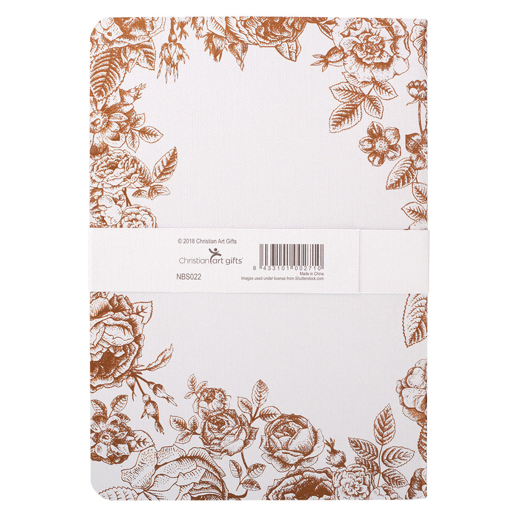 The uplifting message of the Strength and Dignity Medium Notebook Set is one that will make you stand tall with confidence that the Lord is with you always. Each of these beautifully designed notebooks has a gold foiled floral bouquet cover, giving it a vintage style look and sophistication. This set is joined together with a paper o-band and make a wonderful gift idea for a birthday, graduation or job promotion. Combine them with other items from the Strength and Dignity Collection to make an exceptional gift set.