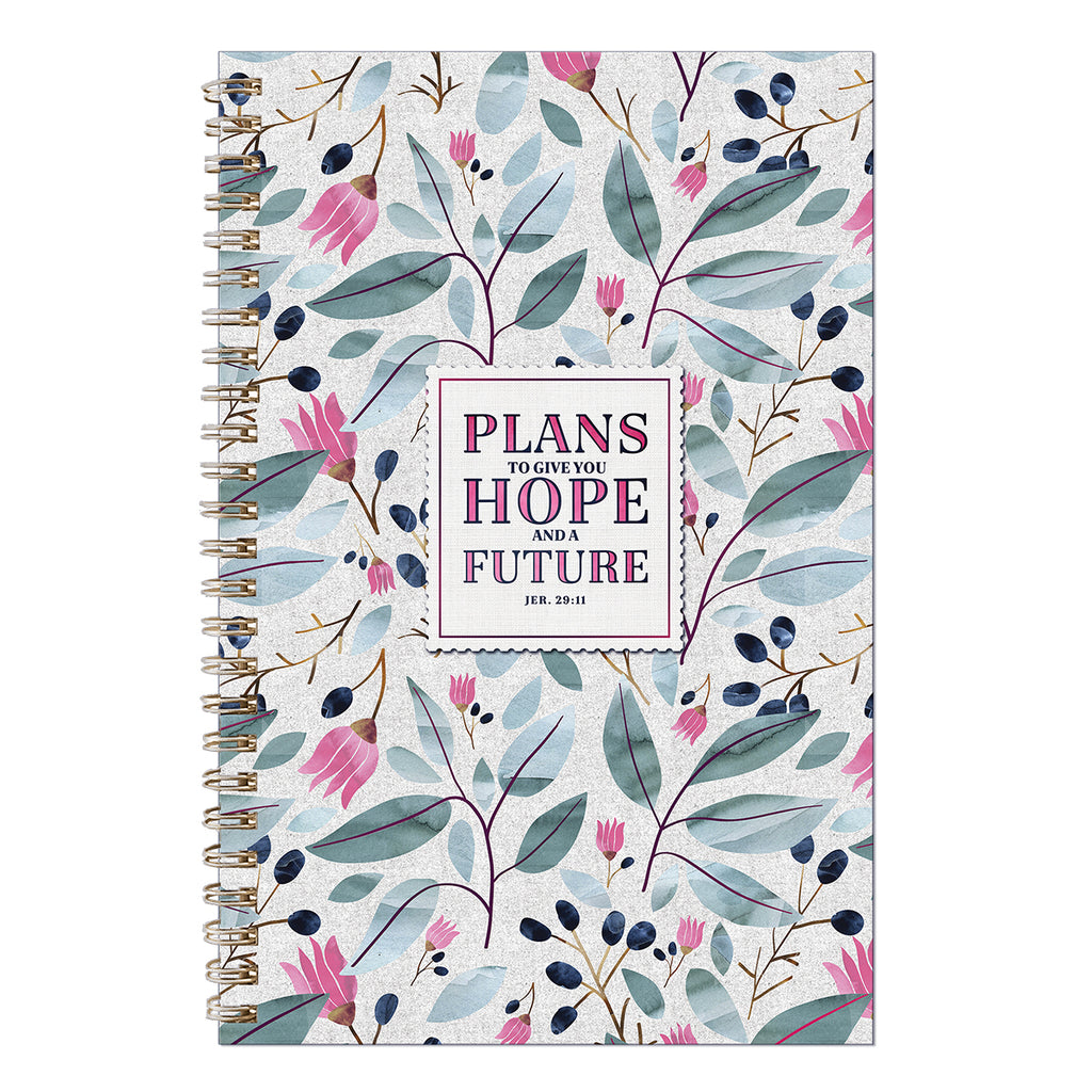 Pen your prayers, takeaways from sermons, reflections, and more in the Plans To Give You Hope Wirebound Notebook. This Christian wirebound notebook features a key portion of the inspiring verse from Jeremiah 29:11, “Plans to give you hope and a future,” and will fill you with hope every time you reach for the Plans To Give You Hope Notebook. Give this Christian gift to a loved one who is graduating from high school or college, starting a new job, or embarking on a new life adventure. The wirebound notebook also makes a wonderful Mother’s Day, birthday, Christmas, or “just because” present.