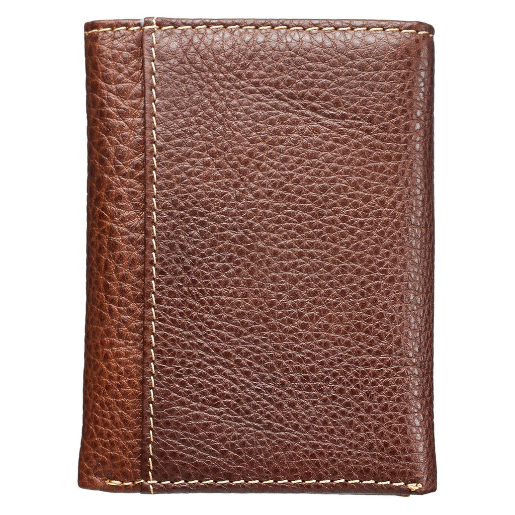 This exquisitely crafted dark brown Names of Jesus Trifold Wallet is crafted from rich brown genuine leather. Brown topstitching adds support to the ID and credit card slots. A heat debossed cross designed with the names of Jesus grace the front cover.