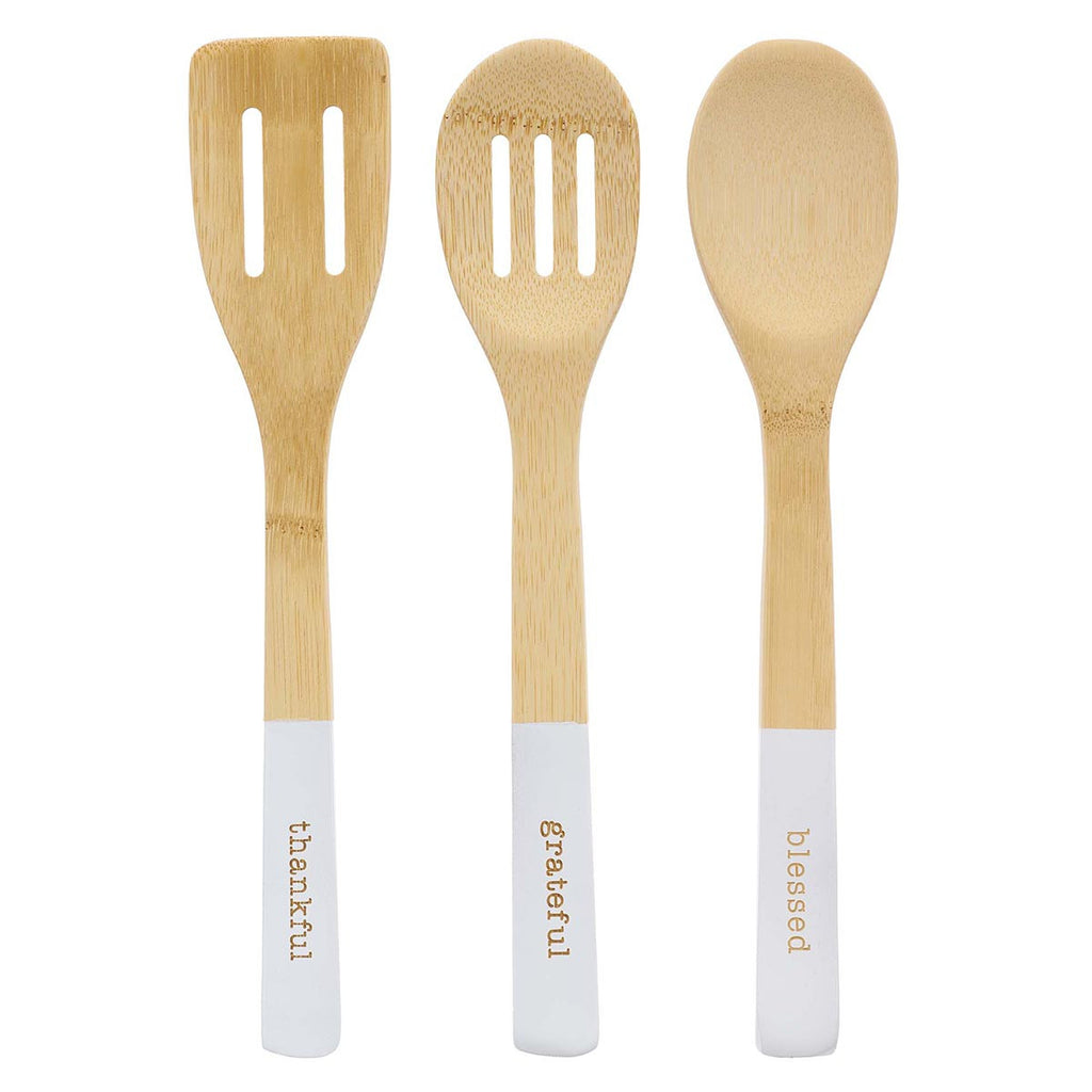 Add a special touch to your Thanksgiving table with this 3-piece Thankful Grateful Blessed Bamboo Spoon Set.