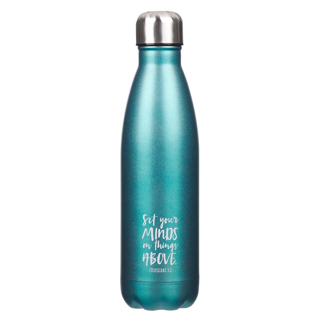 We've taken this premium double walled stainless steel, vacuum sealed bottle and decorated it with artistic Scripture inspiration. 17 ounces of your favorite hot or cold beverage keeps its ideal serving temperature all day long. Iced beverages won't cause sweating and the bottle stays cool to the touch with beverages at the hottest temperatures. The twist-on lid has a silicone ring that ensures a snug fit to make the bottle leak-proof and help retain the internal temperature. Metallic Finish. Safety and Use Instructions Included.17 Oz Capacity - 10 3/8 Inch Tall