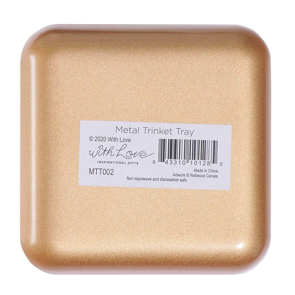 The metal trinket tray is part of the Cultivate Kindness Collection that includes a ceramic mug, wirebound journal, and glass infuser water bottle - all spreading the same positive message. Share the gift of an organized life when you gift the Cultivate Kindness Metal Trinket Tray.