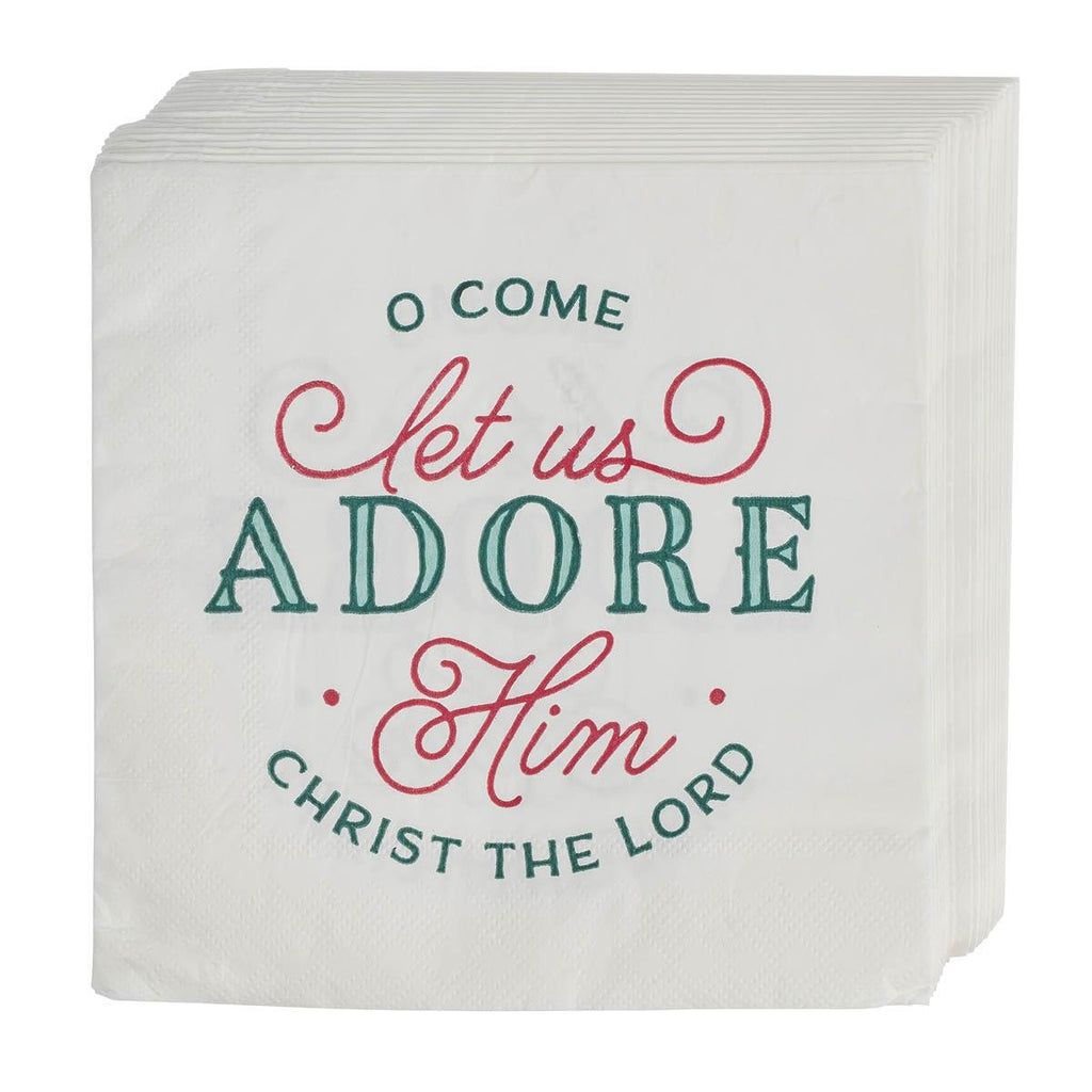 The Come Let Us Adore Him Paper Napkin Set is a thoughtful addition to a hostess gift or holiday care package. It will also look festive on your Christmas table.