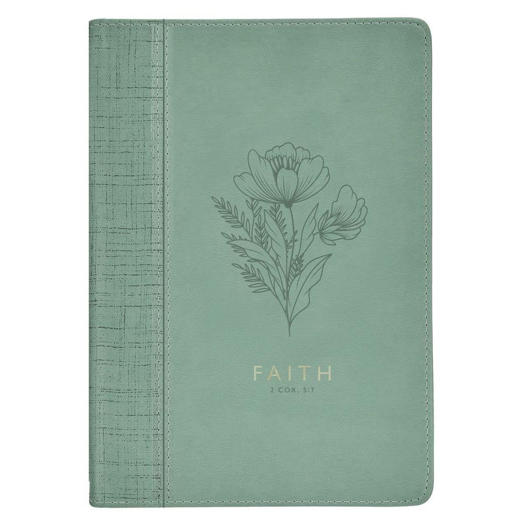 The Faith Teal Floral Faux Leather Classic Journal is part of the Faith Teal Floral Collection, designed to keep you grounded in the truth of Scripture. You can also find the delicate floral design of this collection on a coordinating Bible, notebook, and bookmark.