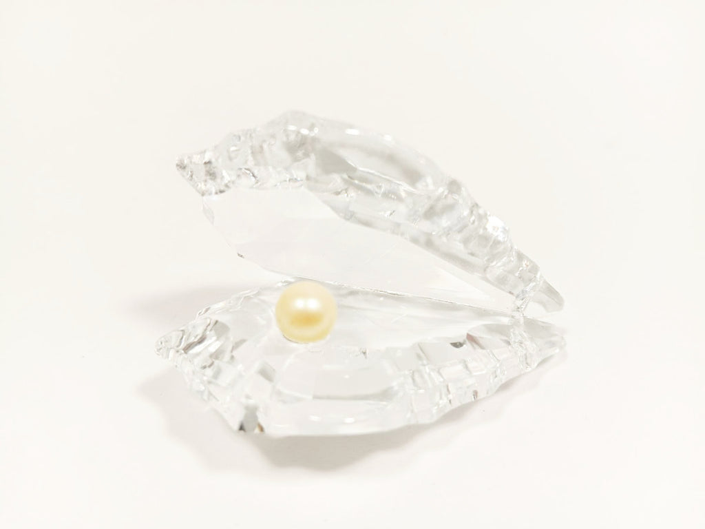 Deze verfijnde kristallen schelp met parel is een prachtig symbool van waarde en liefde. De schelp is gemaakt van hoogwaardig, helder geslepen kristal dat het licht op een schitterende manier vangt en weerkaatst. In het midden rust een kleine, glanzende parel – een teken van kostbaarheid en uniciteit. Met zijn afmeting van 4 x 5 cm is dit sierlijke stuk compact en toch opvallend.
