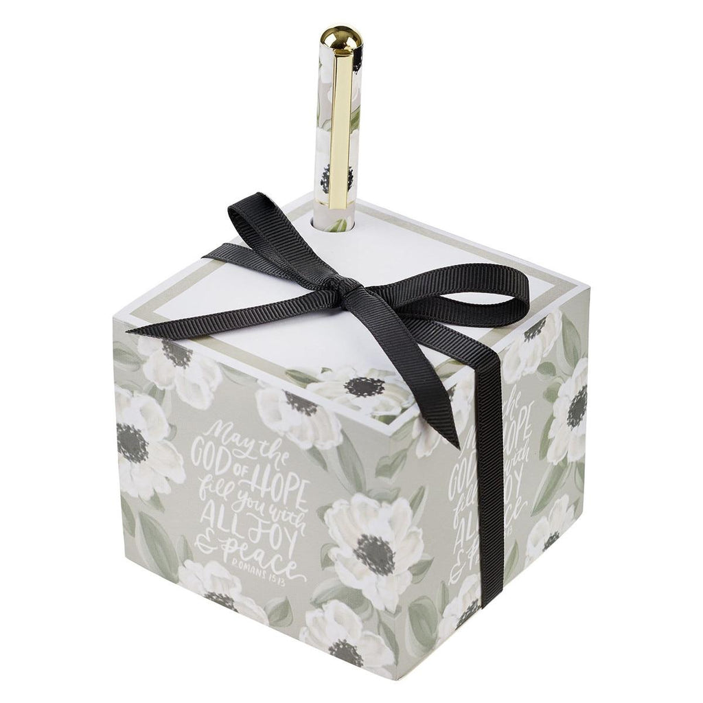 Let Scripture bring peace to even the busiest days with the Joy and Peace Monochromatic Floral Note Block with Pen Set. The verse from Romans offers a quiet reminder of the joy and peace that comes from knowing God with every note you write.