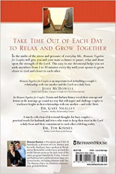 "Moments Together for Couples offers 365 daily devotions that will help draw you and your spouse closer together and closer to the Lord. Each brief reading offers a Scripture highlight, an insight, a question for discussion, and a prayer to close. Whether you spend 5 minutes or 30 minutes together, Moments Together for Couples will give you a chance to pause, relax and draw on the Lord's strength for your marriage."