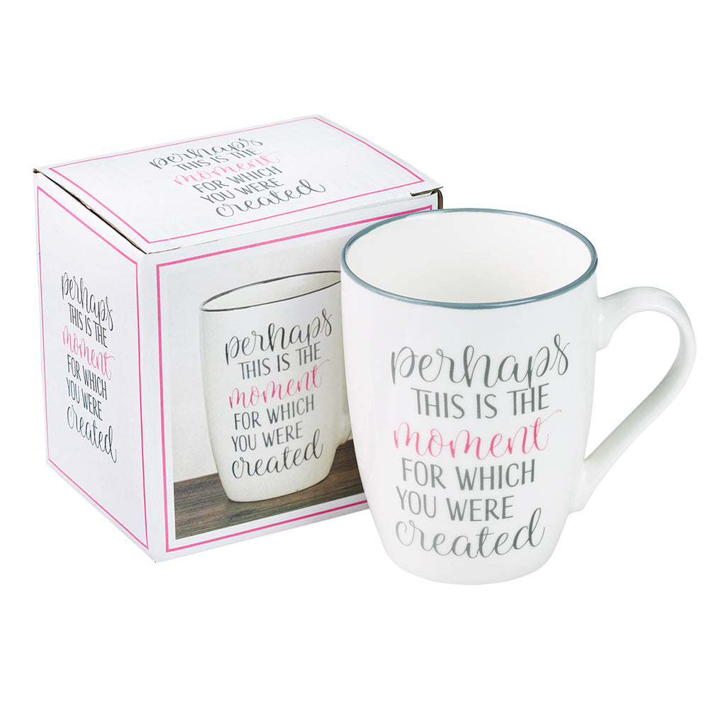 TheThis Is The Moment Coffee Mug makes a bold statement with a paraphrase from Esther 4:14, “Perhaps this is the moment for which you were created.” This ceramic coffee mug offers a powerful reminder that God created us for a purpose. This coffee mug will encourage and motivate her as she steps out into the world to conquer the day. With its eye-catching design, with alternating script and block fonts, this mug will fit with a variety of décor styles.