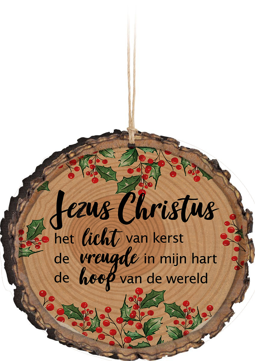 Versier deze kerst je boom met een symbool dat je herinnert aan de schoonheid van het leven, de vreugde van het geven en de magie van het seizoen. Laat ons MDF houten ornament een bron van inspiratie en een baken van licht zijn tijdens deze speciale tijd."Tekst: Jezus licht vreugde hoop