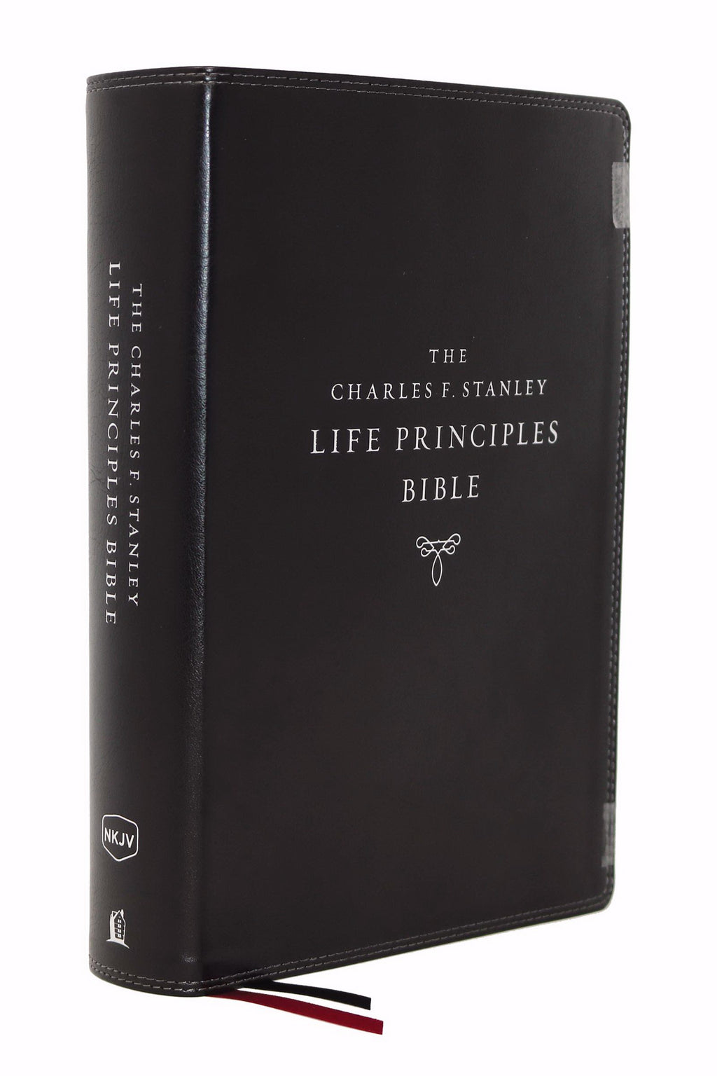 NKJV Charles F. Stanley Life Principles Bible (2nd Edition) (Comfort Print)-Black Leathersoft Indexed